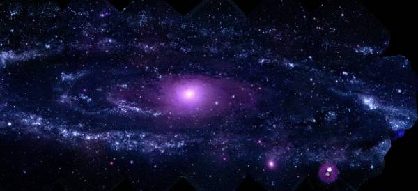 NASA的这张照片展现了邻近的螺旋星系仙女座星系(也称为梅西耶 M31)在紫外线下的壮丽景象。科学家利用雨燕号紫外线/光学望远镜拍摄的330张影像合成了这张影像。影像中可见约2万个紫外线源,其中包括围绕 M31 运行的小星系梅西耶32 (M32)。