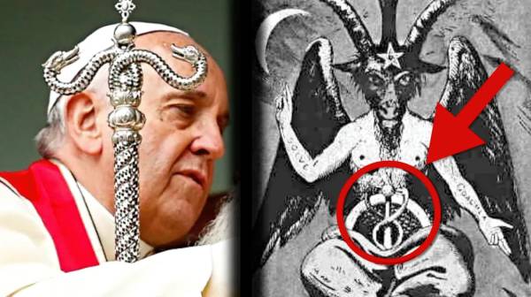梵蒂冈其实是路西法教徒。这是一张教宗方济各(Pope Francis)和他的牧杖的照片,撒旦存在体巴弗灭(Baphomet) 也有同样的一个。路西法教徒崇拜巴弗灭,梵蒂冈是路西法信徒也就显而易见了,这是他们必须做的事情。根据宇宙法则,他们必须公开自己的所作所为,所以他们在操纵我们的同时也向我们展示出了一切。如果我们不用眼睛去看,就看不到。