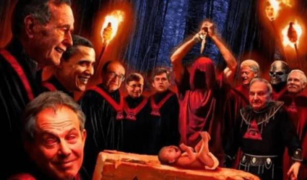 “这张图片所展现的非常写实和精确,因为我当时就参加了这些仪式。在仪式上看到了这些人:托尼·布莱尔(Tony Blair)、乔治·布希(George Bush)、欧巴马(Obama)、比尔·盖茨(Bill Gates),乔治·索罗斯(George Soros)、比尔·柯林顿(Bill Clinton)等。事实上,要获得任何权力,你必须经历这些仪式包括强奸,甚至牺牲一个孩子。这就是组织对他们敲诈勒索的方式,也是他们攀登权力阶梯的方式。”