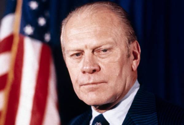 其右 - 当时的加州州长罗纳德·里根 (Ronald Reagan)