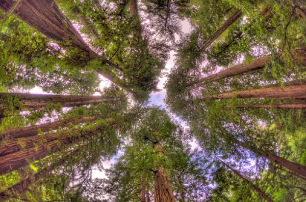 “它会突然显现在你的眼前。一步之间,这份荣光便笼罩你身。没有远近感;你无法退得足够远来完整地欣赏这些树木。它们矗立于此,高耸入云,其顶端的枝叶要么藏于云端,要么消失在天空中。”