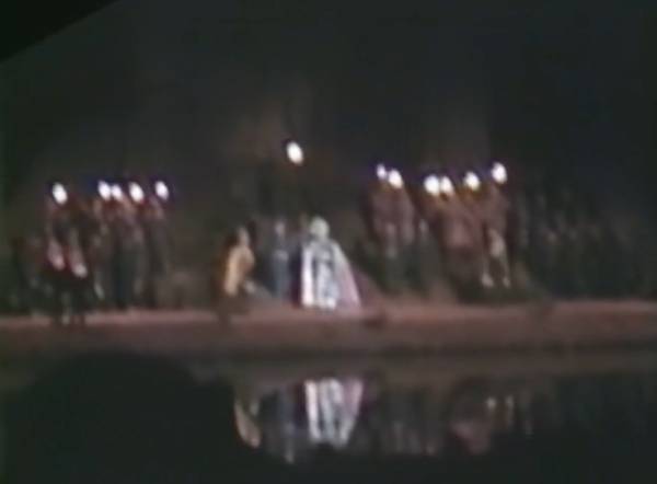 接下来,一个像彗星一样的亮光划破长空,直奔舞台而来。那是一场精心设计的烟火表演。猫头鹰继续说,’听着,你得把那个人给我,你现在就得把它烧掉,我会解决你所有的问题。’ 有人手持火把点燃了’人偶’,随着几声剧烈的惨叫,燃烧开始...。