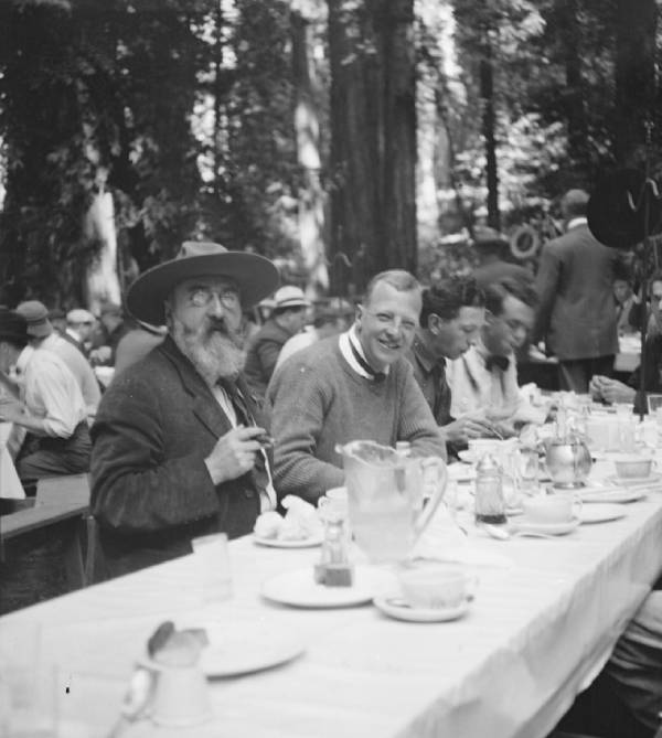 早餐,是波西米亚营地一天中最丰盛最的一餐。粗糙长长的木桌上堆满了新鲜的水果,提供的菜肴有阿拉斯加鳕鱼、炒羊腰、鸡蛋、法式吐司、培根和香肠等等。晚餐有牛排、葡萄酒等,还可以边吃边看剧院的演出 - 一位扮成女人的年轻男演员扯开一件紫色的薄纱长袍... 用餐圈和营火圈之间那些高大的红杉树现在可能散发着浓烈的尿骚味,树根周围的土壤也变成了黑乎乎的一片,彷彿永远穿着一条脏兮兮的裙子。