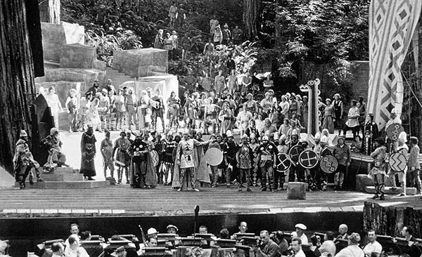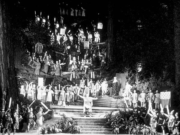 丛林舞台:一个可容纳 2000 人的露天圆形剧场,主要用于仲夏聚会最后一个周末的丛林戏剧演出,舞台沿着山坡向上延伸。