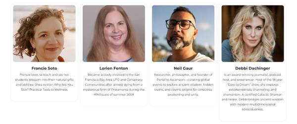 这是心灵、思想与精神的交汇。在NLE,您将结识一群追求真理、富有远见的探索者,他们致力于探索健康、灵性和人类潜能的前沿领域。"扬升之门"已在全球举办超过4000场活动,我们将古代文明的知识、形而上学、整体健康以及UFO揭秘融入沉浸式体验之中。