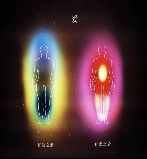 当一个人充满了纯粹的爱的情感时,他/她的光环是最美丽的高级玫瑰色调。时常,一个人的光环不只一种颜色或是一个颜色群,这表明他们具有多种品质。例如,橘色和金色的光环可能意味着某人既善良又富有创造力。