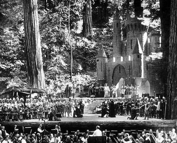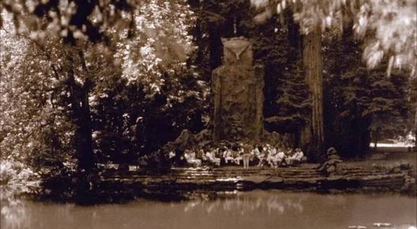 “貓頭鷹棲息在綠蔭掩映的聖殿中。林中眾生皆應向他表示崇敬,樹木啊,抬起你們的頭… 永恆的尖頂啊,高高聳立… 看哪!這裡是波希米亞的聖地,這殿堂的柱子神聖無比(他指的是這些紅杉樹是他們的神殿)。 織網的蜘蛛勿入!嘿,波西米亞人… 伴著潺潺的流水… 鳥兒的歌唱… 能撫慰沉淪的靈魂… 我們誠摯邀請你們加入仲夏的歡樂。頭頂是湛藍的天空繁星點點,林間地面堆滿了芬芳的沙礫,傍晚的清涼親吻著你們,篝火閃爍…玫瑰色的黎明悄悄降臨,拂去城市的塵埃,拋卻你們的憂愁,將生活的煩惱拋向風中。但回憶喚起了那些英勇摯友的親切名字… 他們曾經了解並熱愛這片樹林。昔日親密的夥伴們,是的,讓他們加入我們的儀式,我們中間不能有空位。他所有的戰鬥… 無論是在這世界的灰暗秋日,或是在你們心中的春天… 都請聆聽我們的故事。森林中的人團結起來… 對這些凡人施展你們的魔法,用腐肉觸碰他被世界蒙蔽的雙眼… 讓他睜開雙眼,感受幻想...。”