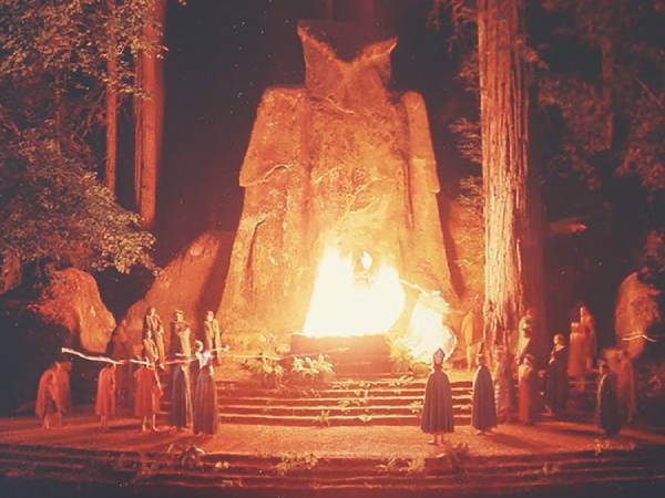 這項名為”焚燒憂慮”的秘密儀式自1923年以來從未改變,至今仍是每年夏令營的開場儀式。儀式上,一艘小船橫渡湖面,駛向一群身披斗篷的人,其中包括一位大祭司。大祭司在貓頭鷹雕像旁等候,從擺渡人手中接過”人偶”。隨後,他將”人偶”放在神龕腳下並點燃。這隻貓頭鷹會向大家講話,是事先錄製好的語音,它由成員以及前面提到過的 - 冷战时期美国最富盛名的电视新闻节目主持人、CBS晚间新闻的明星主播小沃爾特·克朗凱特配音。