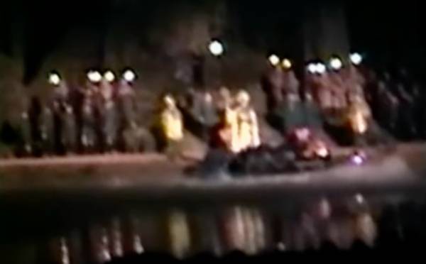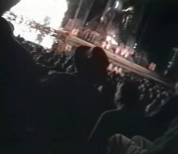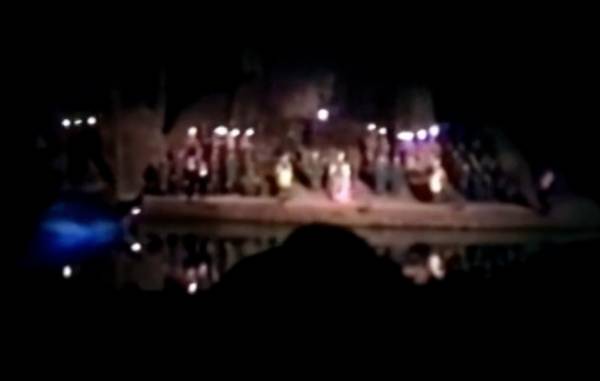 接下來,一個像彗星一樣的亮光劃破長空,直奔舞台而來。那是一場精心設計的煙火表演。貓頭鷹繼續說,’聽著,你得把那個人給我,你現在就得把它燒掉,我會解決你所有的問題。’ 有人手持火把點燃了’人偶’,隨著幾聲劇烈的慘叫,燃燒開始...。
