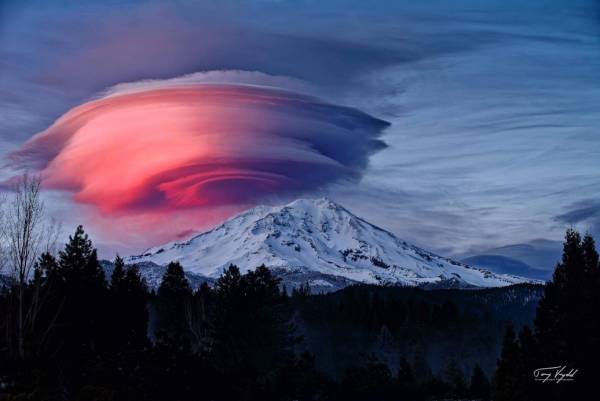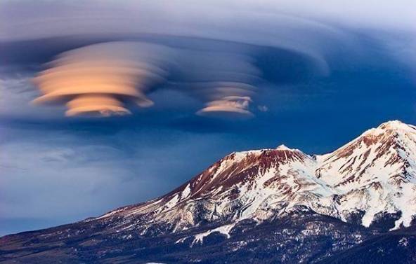 美国加州的沙斯塔山(Mount Shasta),是地球上通往另一个维度的重要门户之一。神奇的景象时常在山的上空与山脚下发生,其中以其种类繁多的荚状云又称飞碟云而闻名。有许多不明飞行物的目击事件都归因于飞碟云,关注人类与地球发展的外星文明的飞碟有时就隐藏在飞碟云中,沙斯塔山上的巨大飞碟云曾经就隐藏着利莫里亚太空母舰(Lumerian Mothership)的来访... 让我们来观赏部分被摄影师和普通民众们捕捉到的精彩图片: