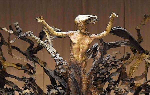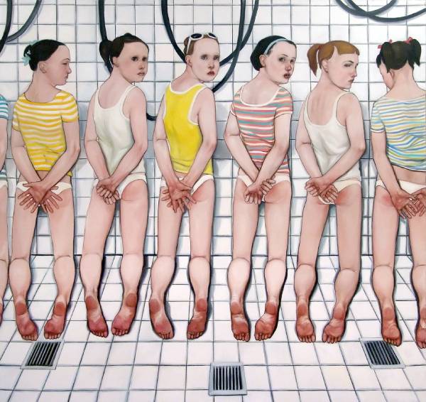 这幅画中,孩子们在游泳池里跪着,他们的脚,还有他们的手,都是红色的。再说一次,红脚是因为血会滴下来,最后滴到他们的脚上。那是范德比尔特家族(Vanderbilt)收藏的艺术作品,他们喜欢用艺术来表现孩子们所遭受的折磨。他们透过这个符号,在电影里、在任何地方进行交流。
