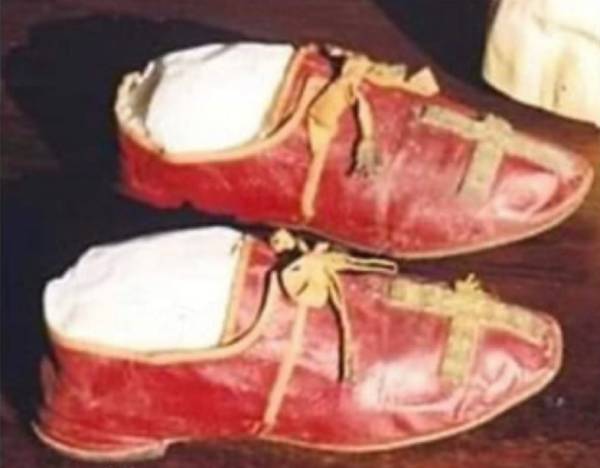 上图中的是著名的教皇鞋,教宗庇护七世(Pope Pius VII)生前物品之一。它是用人皮做的,来自他们谋杀与献祭的珍贵孩子的皮肤,这事发生的时间比很多人知道的要长很多。请记住——这个'红鞋俱乐部'吧。