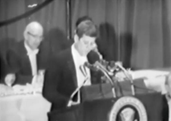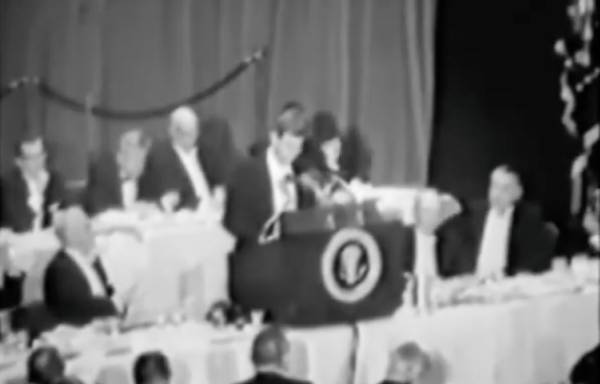 约翰·甘迺迪总统曾在美国报业出版商协会广告局举行的年度(第48届)晚宴上,发表过一段题为"总统与新闻界"的演讲。总统敦促记者,在报道可能影响美国国家安全的事项时「恪守自我约束的义务」。