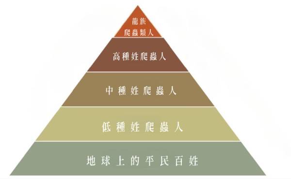 高種姓爬行物種是處於黑暗權力階梯的第二梯階,是權力頂端的人(物種)的命令直接執行者。那麼,高種姓爬蟲人究竟都是誰呢?與龍類爬蟲物種不同,他們是出現在公眾視野中的人,他們是王室成員、一些總統、全球最大公司的負責人、金融巨頭、電視媒體老闆、全球網路擁有者——總而言之,他們是影響人類生活的各個領域政策的人。他們決定這些領域的走向,並為每個行業在不同時期挑選忠誠的金字塔權力梯階的”助手”。這座金字塔反映了存在於那個不易被察覺的層面的金字塔:”上者如下”。